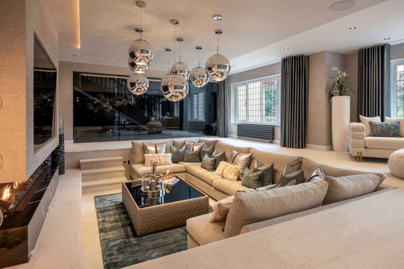 This project required the involvement of an architect, structural engineer and main contractor to name but a few, to realise the vision for this stunning project. This was essential to enable us to take down internal walls to create the main open plan areas; excavate foundations to form the fabulous sunken floor to the living room, structural steel to facilitate a first floor gym, with glass wall overlooking the pool, and feature through fireplace, between the newly formed snug and games room.