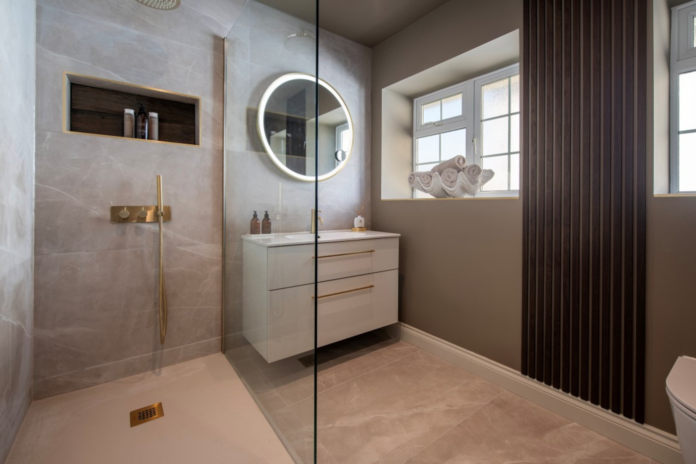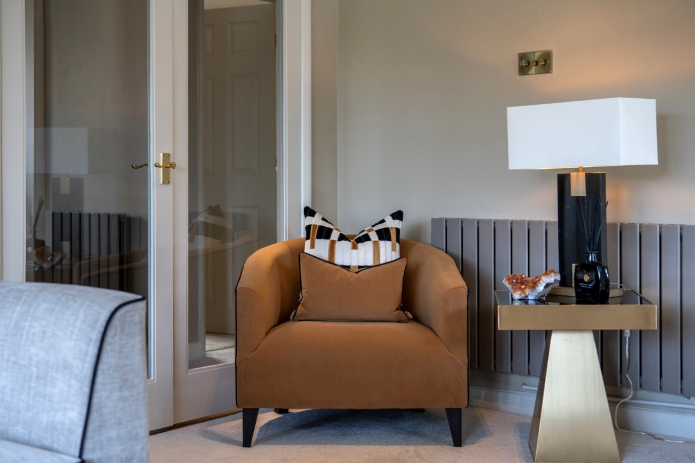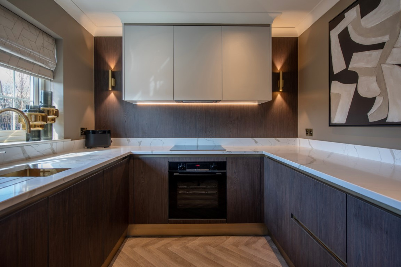 A beautiful transformation of a penthouse apartment in the heart of Harrogate, North Yorkshire. A timeless combination of natural warm woods, rich palettes and brushed brass details throughout, all designed and installed by our in house team with style and precision.